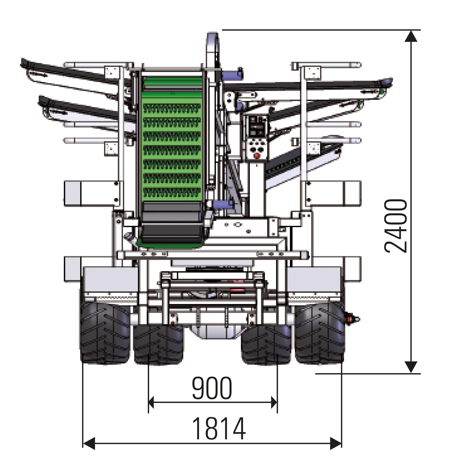 auf bis zu 18 km/h beschleunigen. 4 grosse seitliche Pflückplattformen (Maße
