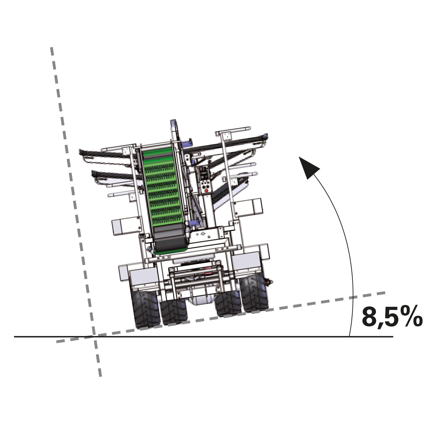 Machine suitable to manage plants with 3.60 to 4.50 m inter-row and maximum
