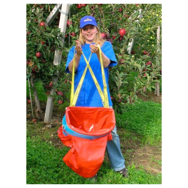 - The bag is emptied easily and safely through the bottom. The long bag enables careful and controlled unloading, thus preventing damage to the fruit