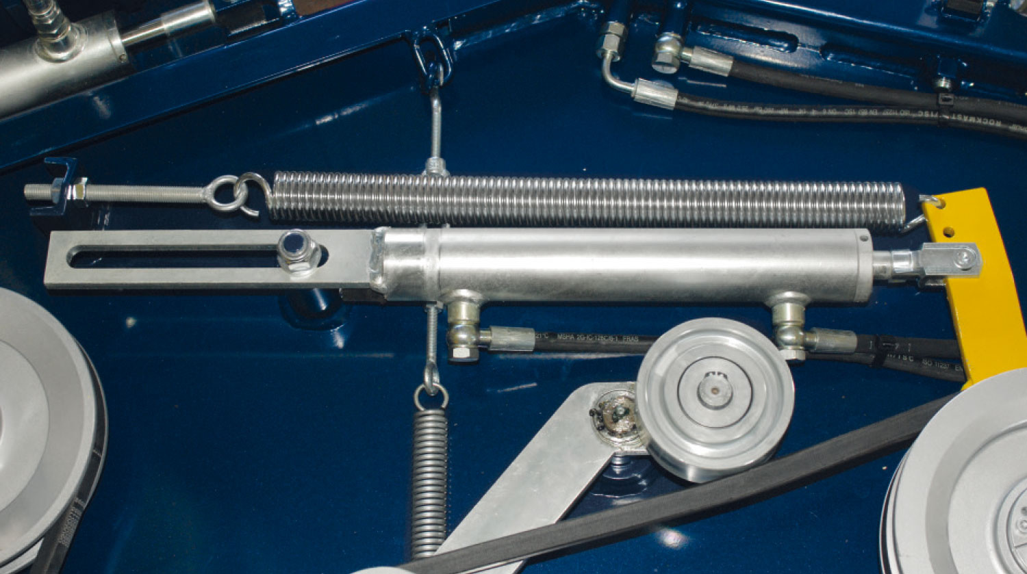 Grazie al particolare pistone idraulico con asola l’operatore può regolare la fuoriuscita della ruota a piacimento rimanendo inalterato il suo rientro in caso di contatto con corpi rigidi. Agendo invece sulla barra filettata della molla si può indurire o allentare il rientro della ruota per tagliare anche vicino alle piante giovani.