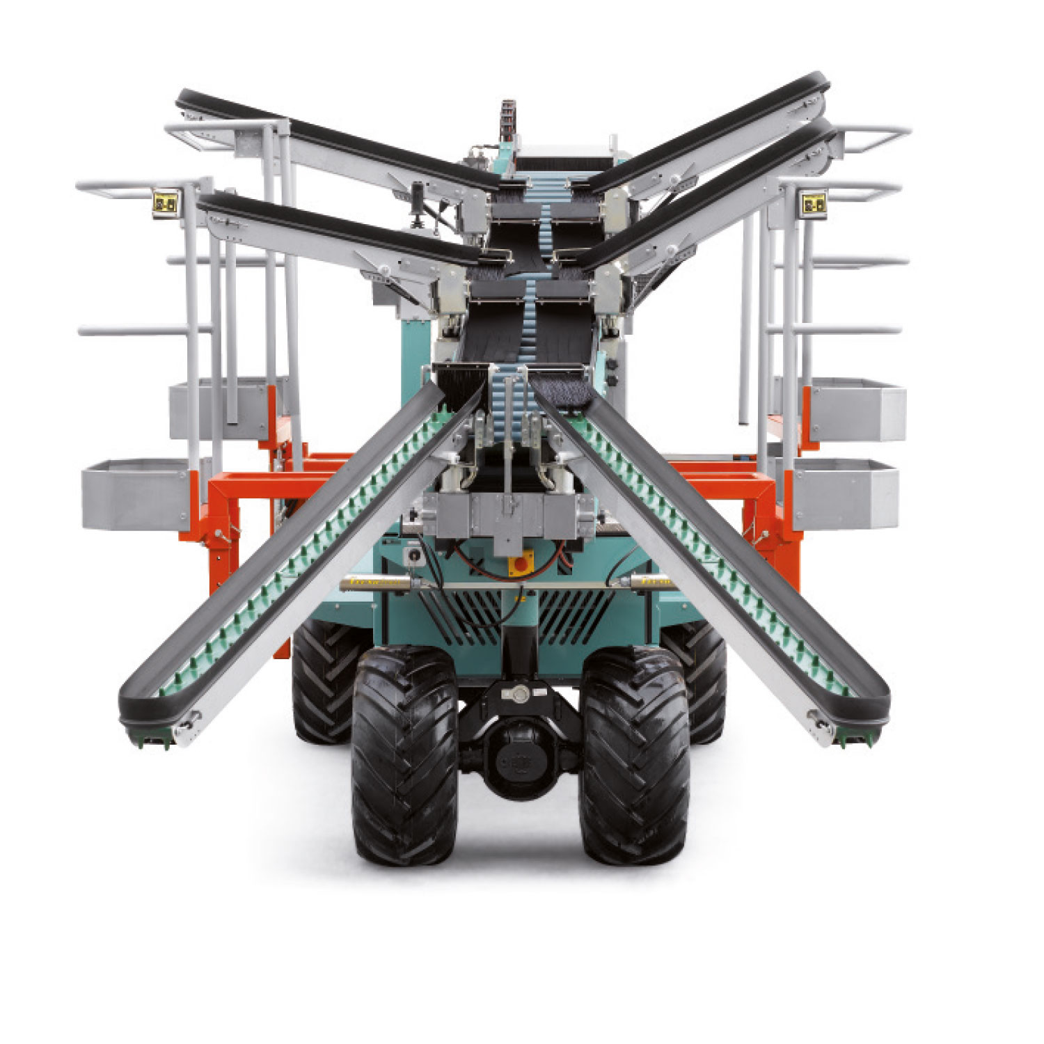 Un sistema di avvisi acustici segnala all’operatore il corretto posizionamento della macchina per garantire un funzionamento in sicurezza ottimale della stessa. Con la Tecnofruit CF 105 Levelling, è stata sviluppata e costruita la macchina ideale per zone collinari in cui spesso si trovano le aree frutticole più vocate.